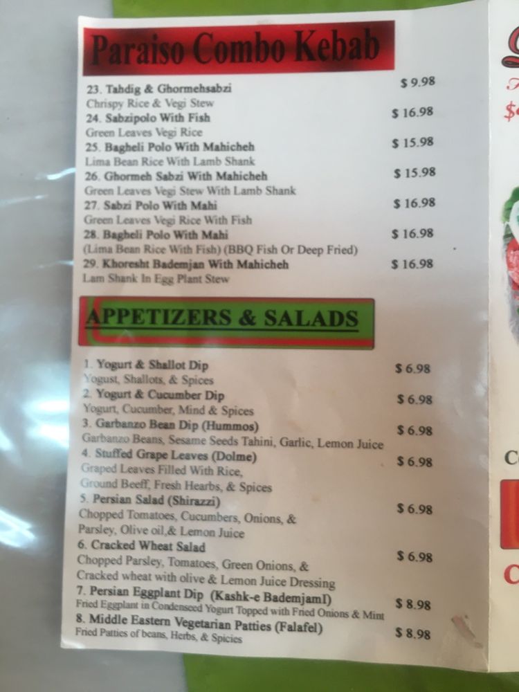 At Paraiso Kebab, savor the vibrant flavors of Middle Eastern cuisine right in Van Nuys, CA. This charming eatery welcomes you with a casual and quiet ambiance, perfect for family outings or a quick bite during lunch.